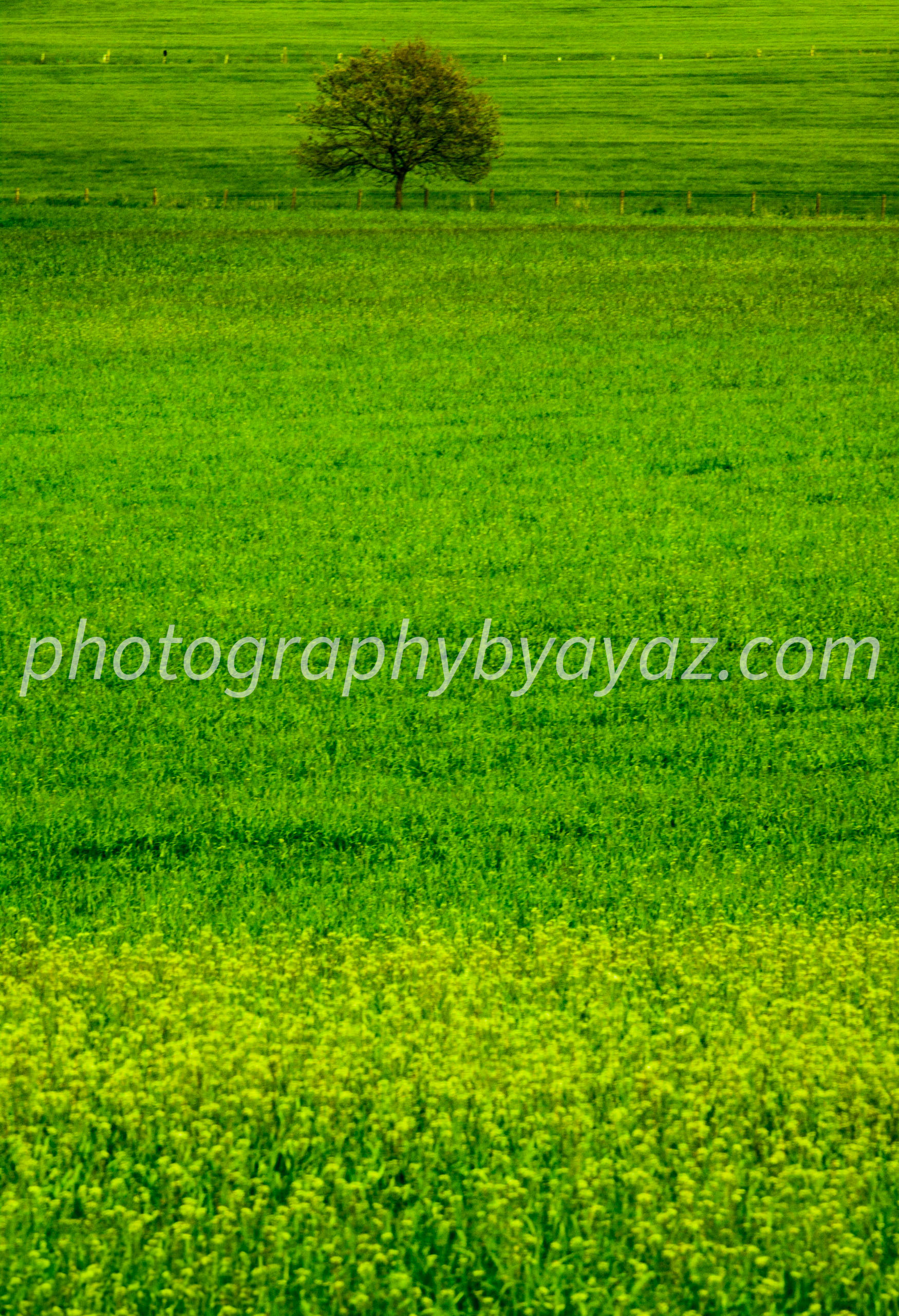 Capture the calm beauty of nature with this minimalist landscape photograph featuring a solitary tree standing in the middle of a lush green field. The fresh tones and peaceful scenery bring a sense of balance and relaxation to any space.